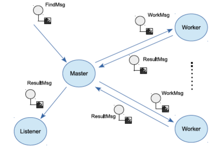 FindMsg mit drei zu durchsuchenden Dateien trifft beim Master einWorkMsg an ihnWorkMsg und sendet Ergebnisse als ResultMsg an Master zurückResultMsg und schickt sie an den Listenerpp.11.01-FindWordsakka.routing.*