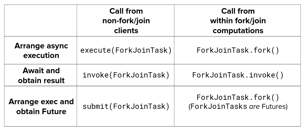 RecursiveAction: Kein Rückgabewert (nur Seiteneffekt, z.B. bei in-place/in situ Sortierung)